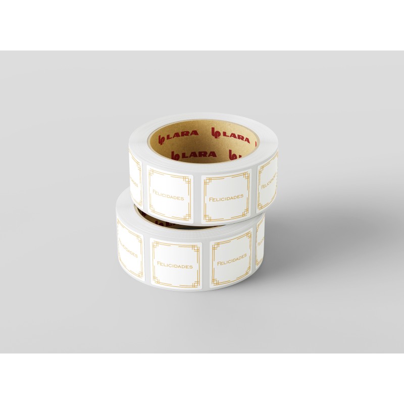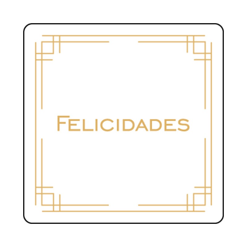 Rollo de 250 ETIQUETAS "FELICIDADES" MARCO CUADRADA