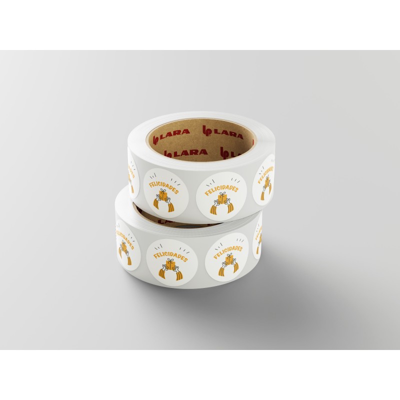 Rollo de 250 ETIQUETAS "FELICIDADES" REGALO CIRCULAR