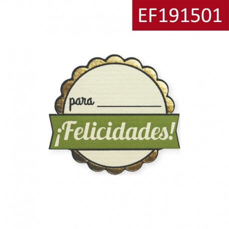 Ver más grande Etiqueta adhesiva de Felicidades , impresa en color las hacen el complemento ideal con las que podremos dar ese toque especial y divertido que a nuestro papel de regalo.