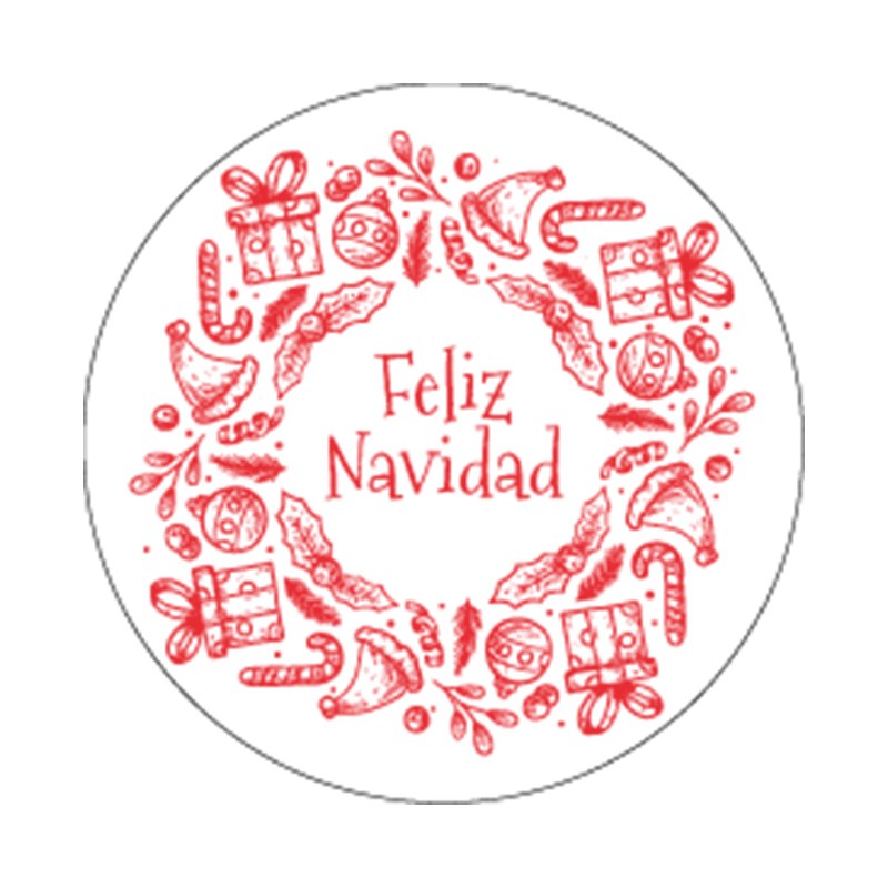 Rollo de 250 ETIQUETAS "FELIZ NAVIDAD" CORONA CIRCULAR